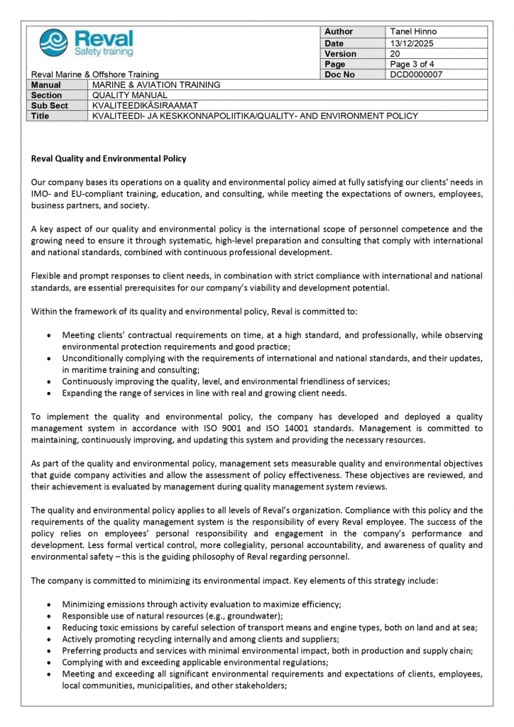 If I take OPITO BOSIET, FOET or CA-EBS trainings in Reval, are these accepted in North Sea by UK, NL, DK or NOR operators ?